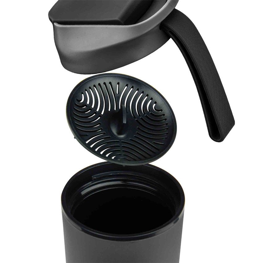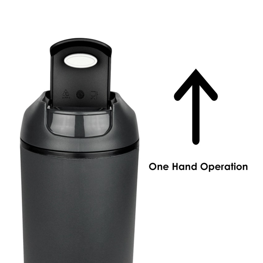 A solid matt suction bottle that won’t spill your beverage if knocked down accidentally. Easily fits car cup holder.