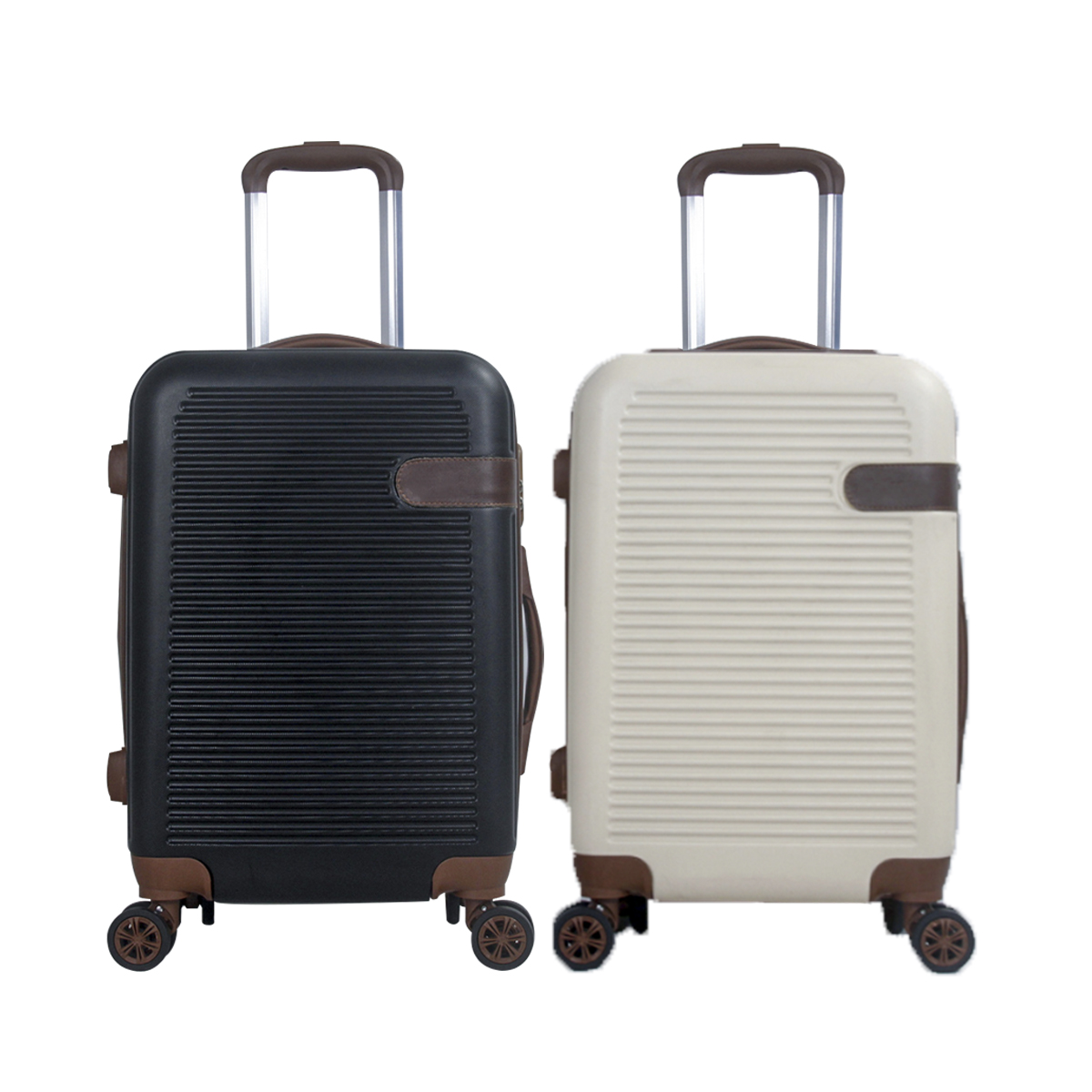 Modern travel luggage with multi-directional silent spinner wheels.