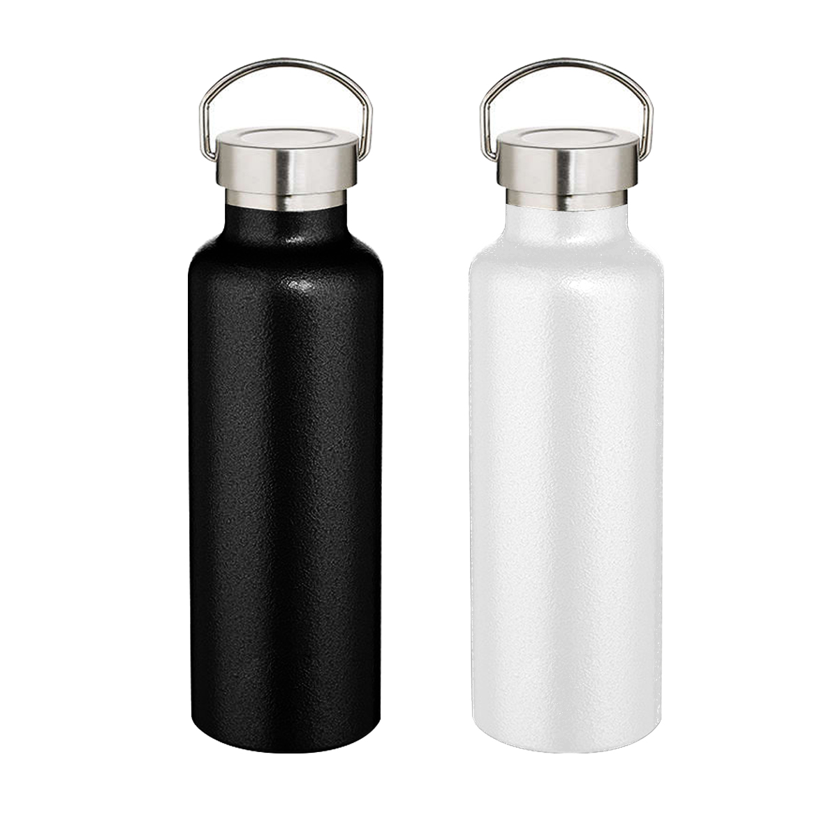 Carry this sleek water bottle using the built-in handle anywhere you go.