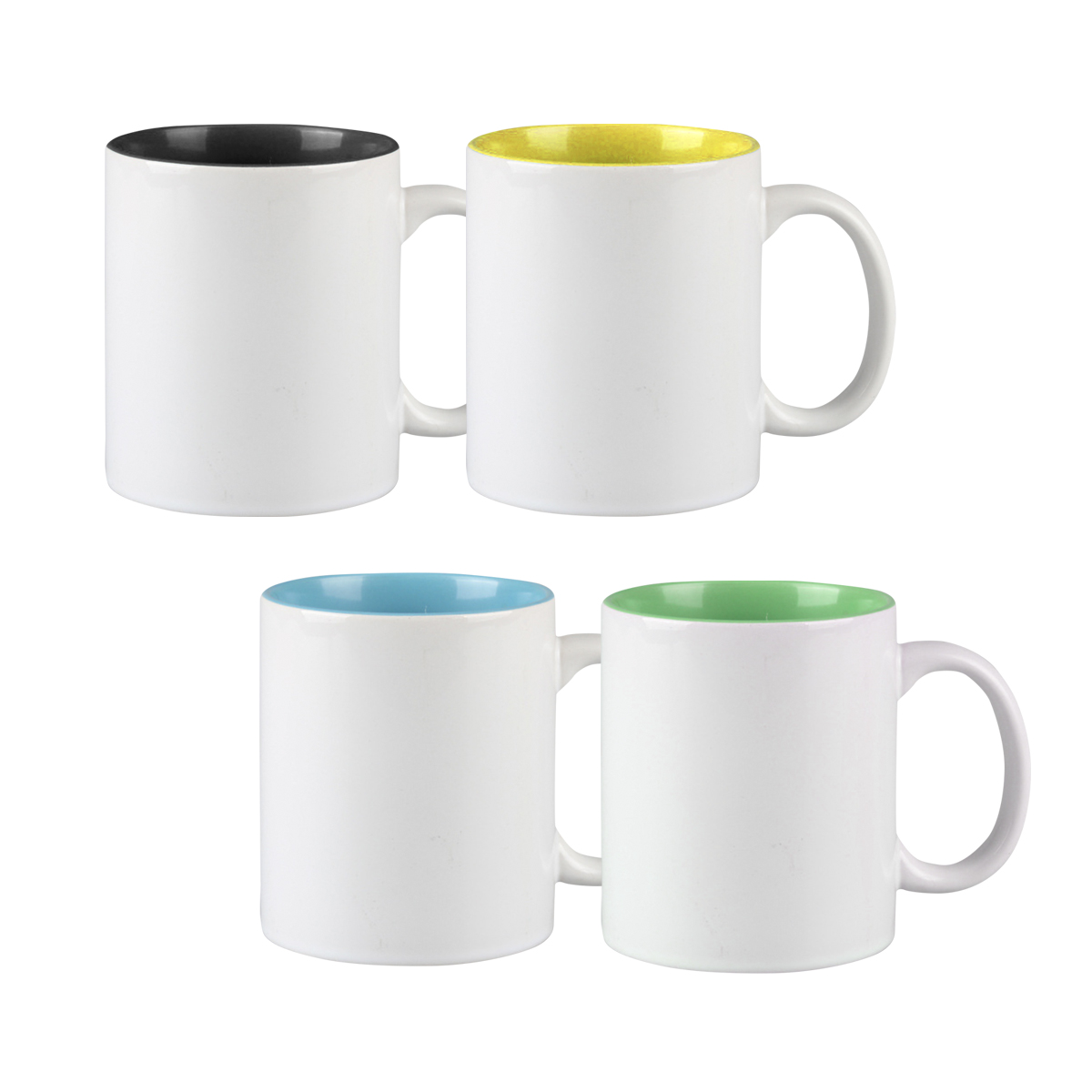 of Ceramic. Suitable for hot beverages like coffee and tea.