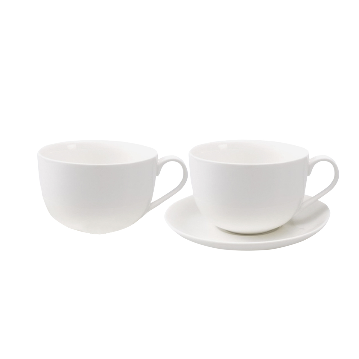 Pure white tone cup and matching saucer that ensures a clean and modern appearance at any occasion such as meeting.