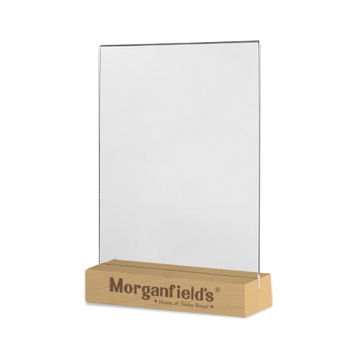 Premium quality tent card holder with wooden base. Great visibility item for F&B outlets. Provide your F&B outlets with a Menu tent card holder and increase the visibility of your brand.