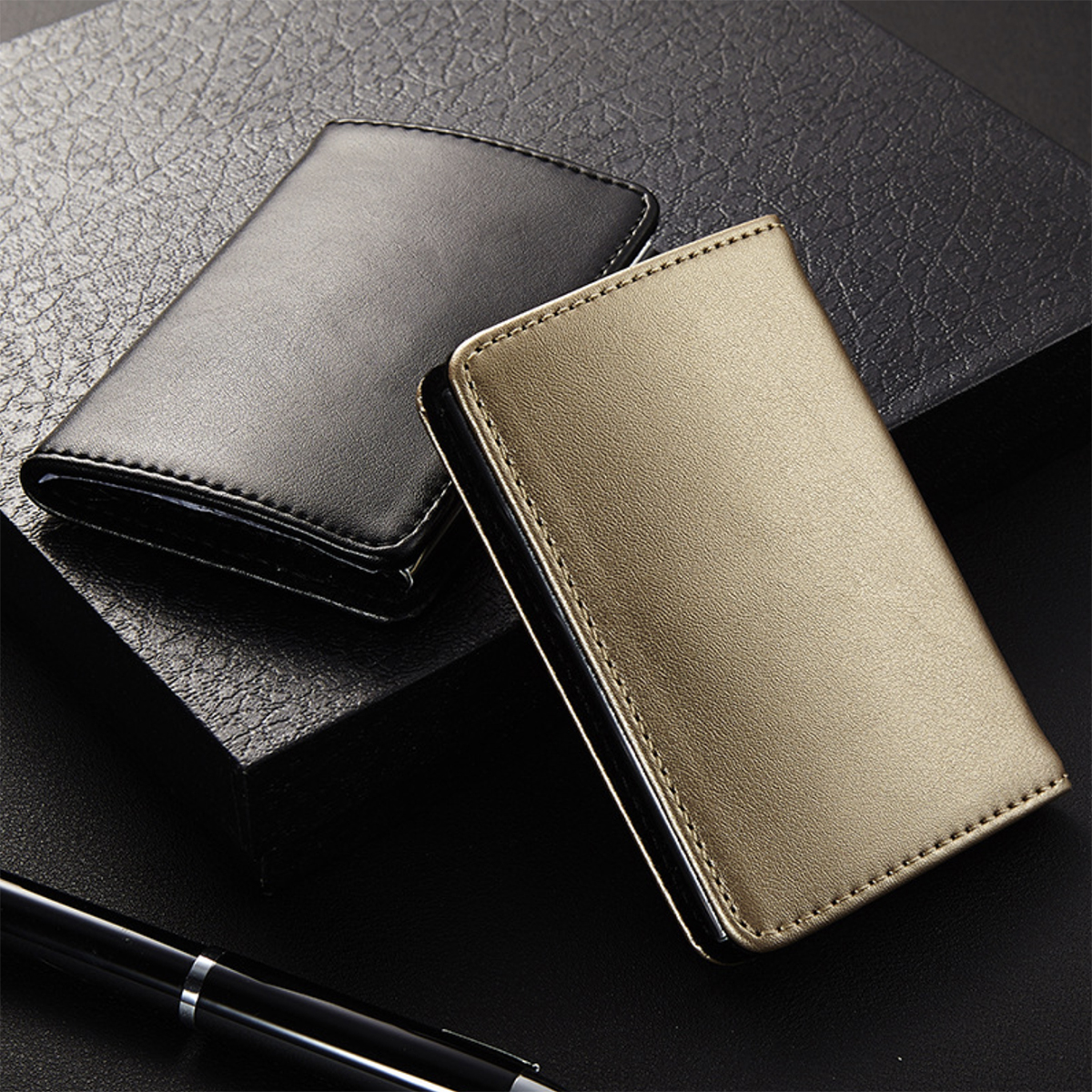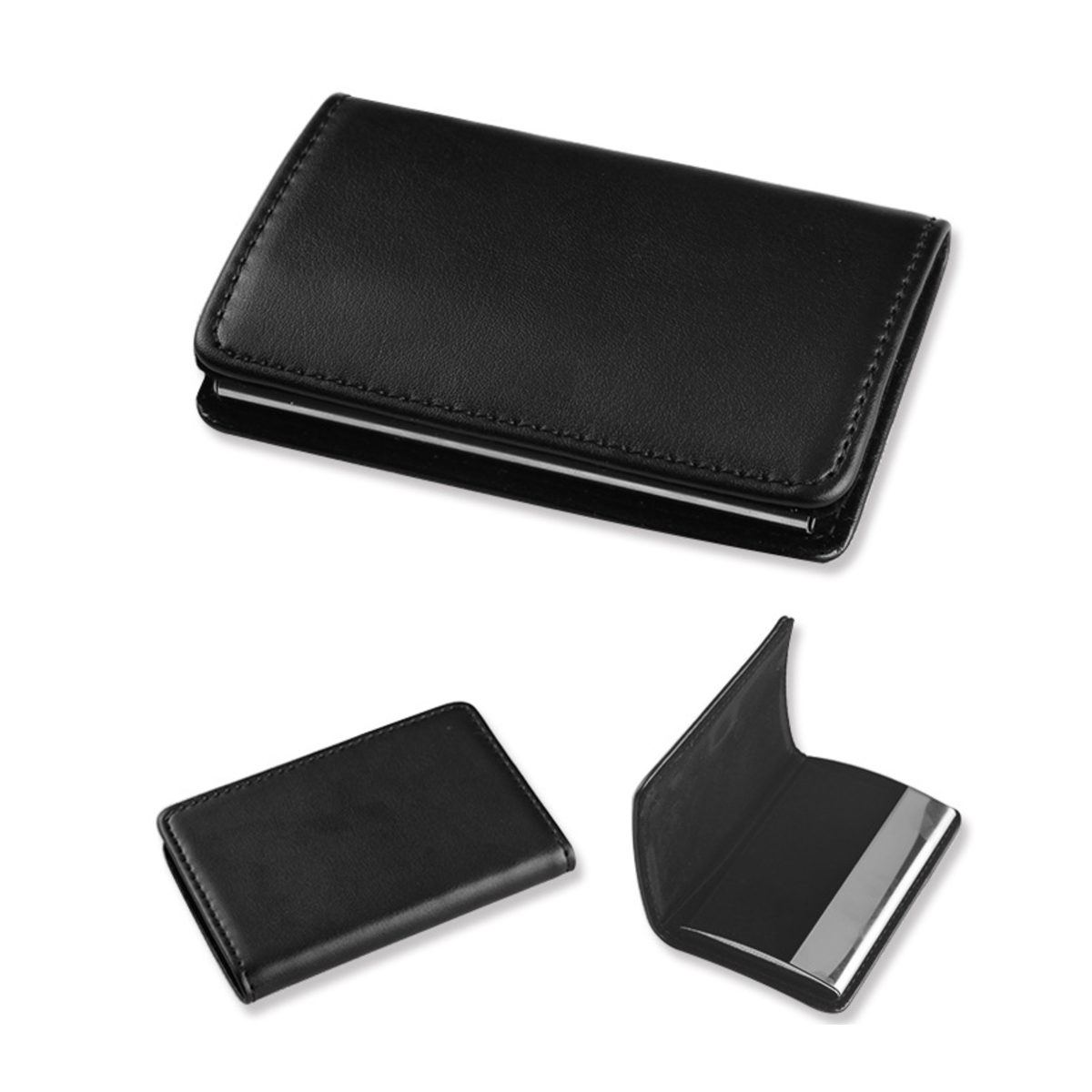 Card holder with PU leather design for classy look. Durable, anti-rust and soft inner lining to keep cards secure.
