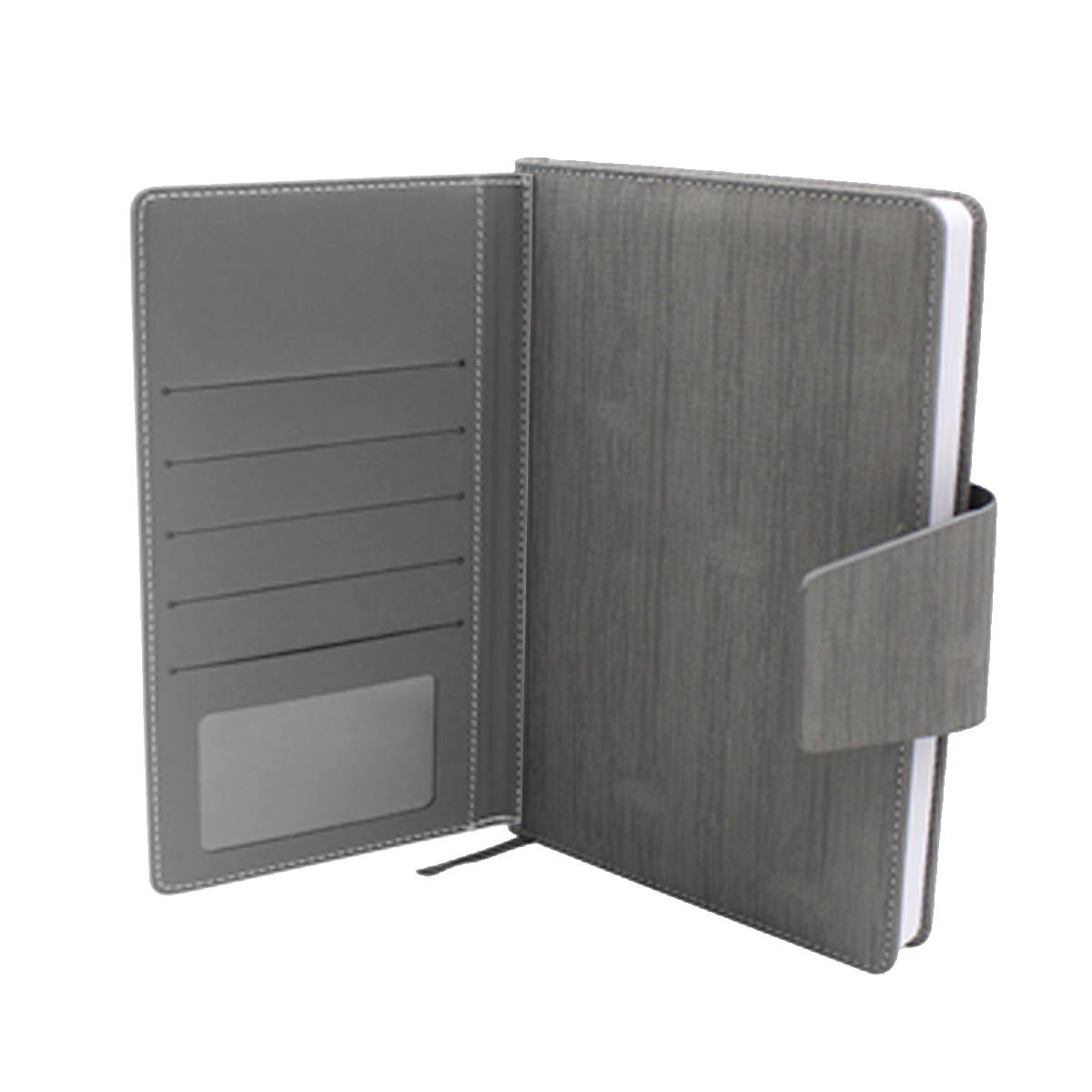 Premium looking leather cover equipped with card slots, pen loop and magnetic closure. Professional & Business look. Suitable for business & corporate use.