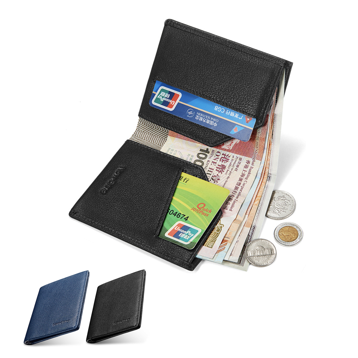 some cash and cards. Slim and lightweight design that easily fits the pocket.