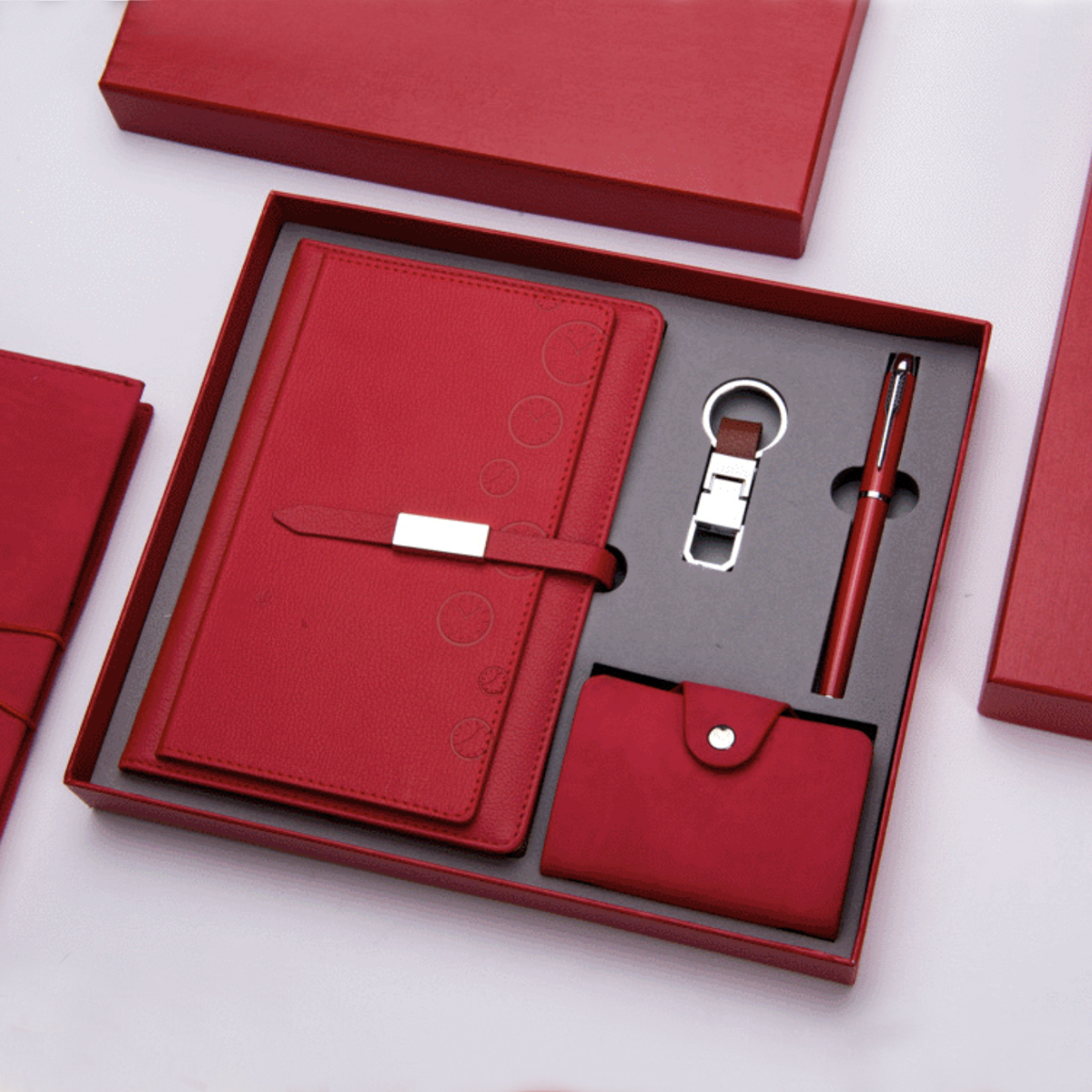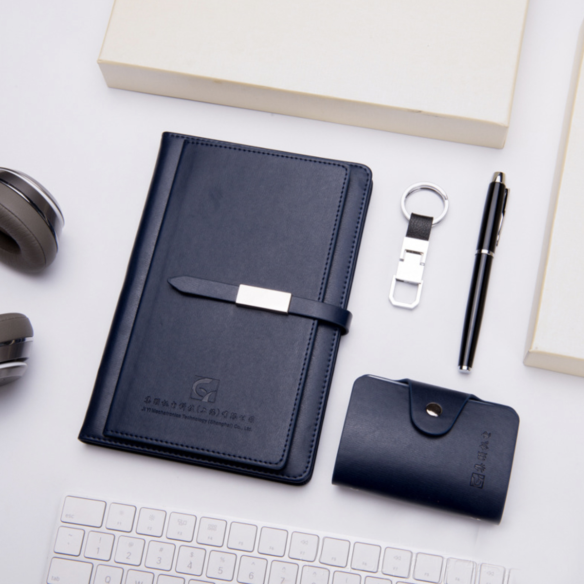 Premium gift set comprising of quality PU leather notebook, keychain, card holder and pen, presented in a gift box. Suitable as corporate gifts or for VIPs & business professionals.