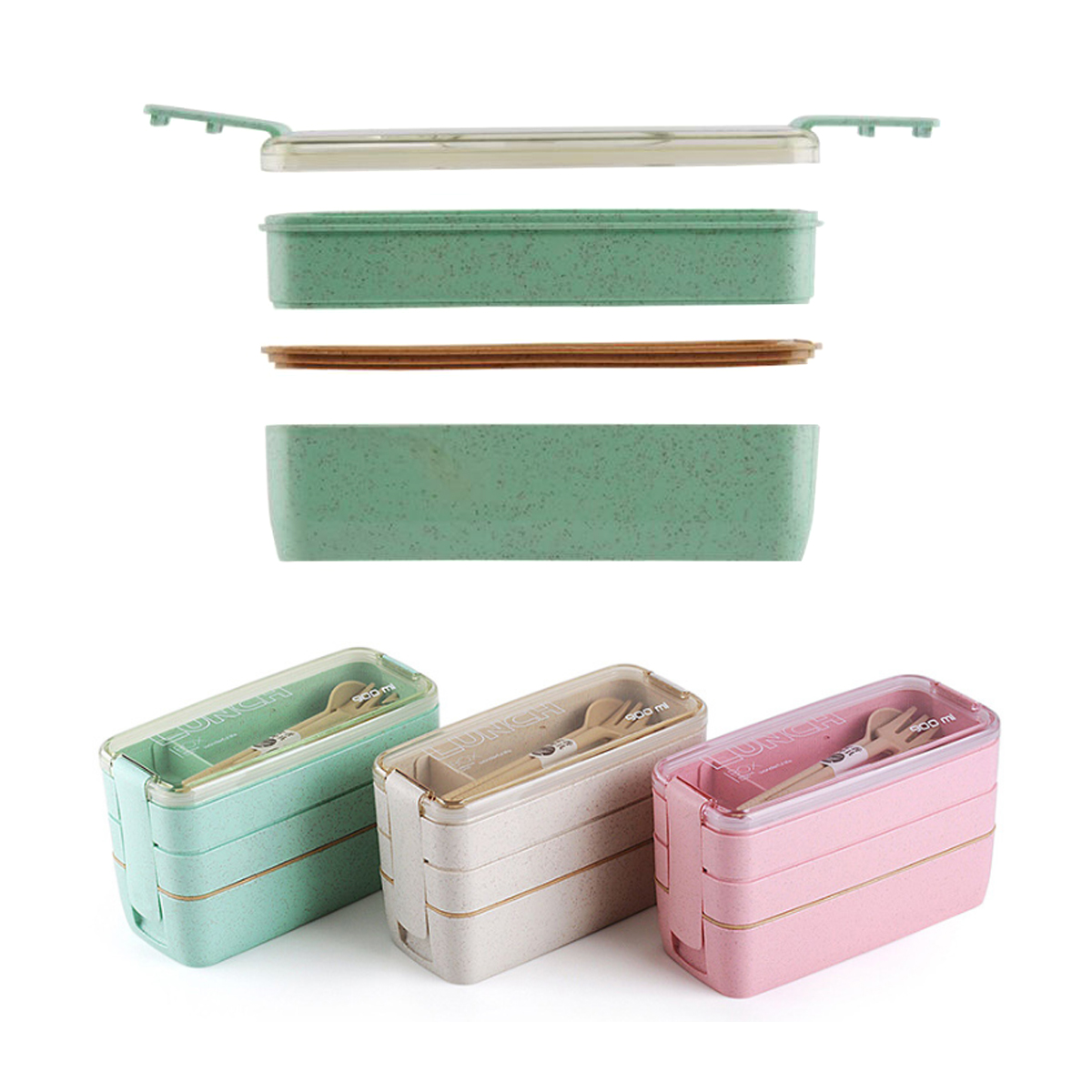 Eco friendly lunch box made from natural wheat fiber. Can be used as a single, double or triple layers. Comes with a set of wheat straw cutlery.