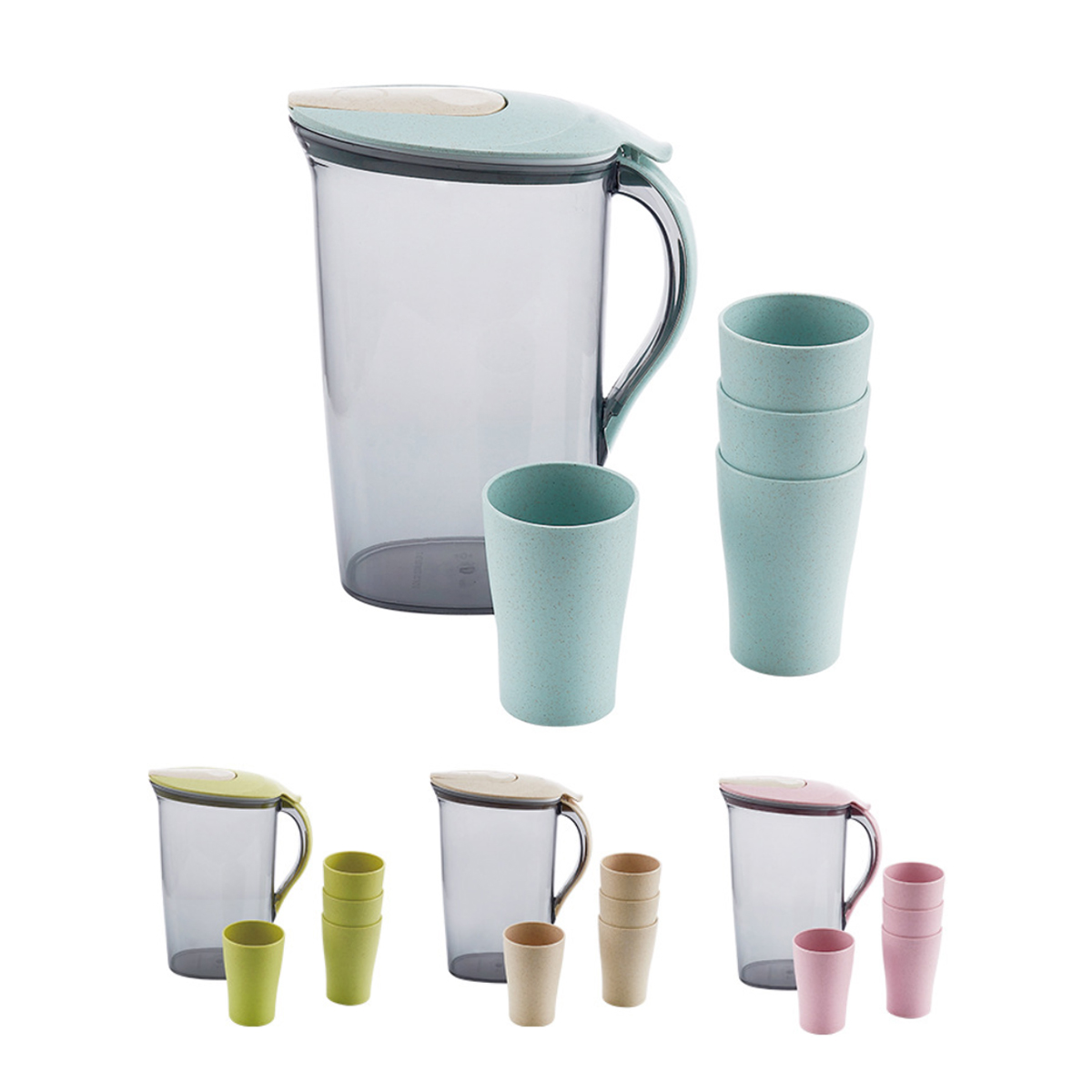 4 pcs eco-friendly wheat straw cups with accompanying pouring jug. Compact & functional gift set idea for every household.