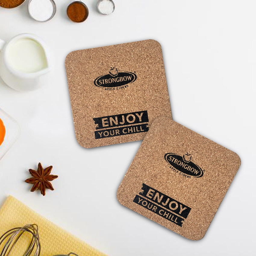 Made from quality cork, more durable than paper or cardboard coaster. Prevent cold and hot drinks from damaging furniture. Customise a design with your brand / logo to create the perfect ambience at your outlets, and to increase brand visibility.