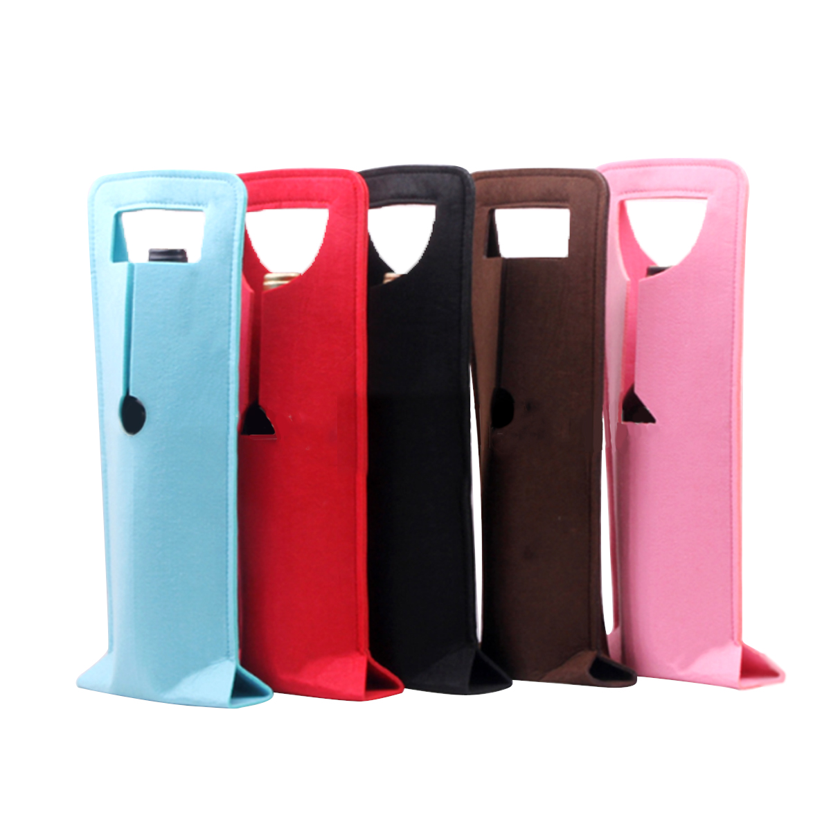 Reusable & durable felt carrier for wine bottle. Handle design for easy and convenient carry. Transform your wine bottle into an exclusive gift by customize a felt wine carrier as a giveaway.