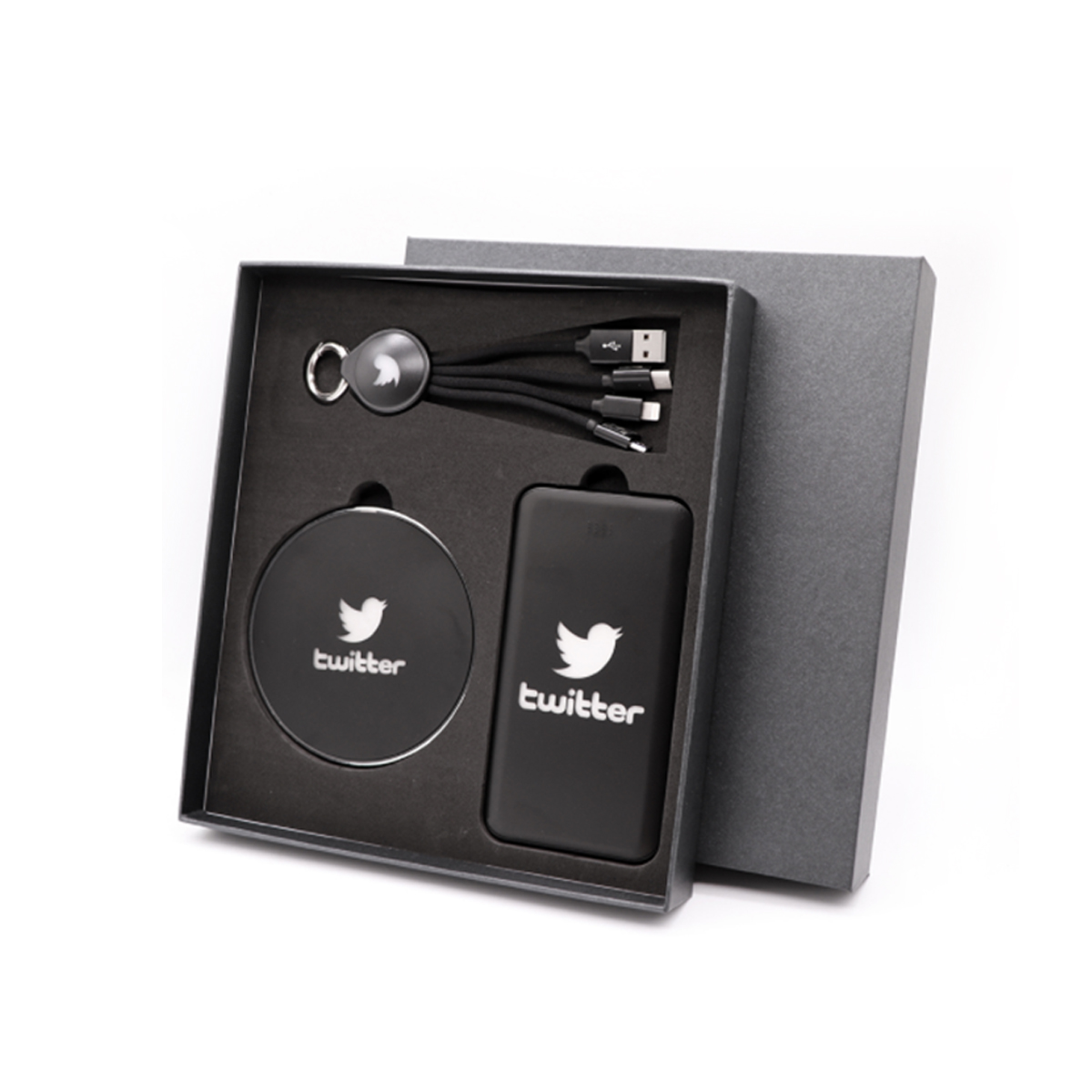 A useful and practical electronic gift set that comprises of power bank, wireless charging pad and cable connectors. Ideal for employees, professionals, business etc. Customize with your logo to transform it into a premium gift set.