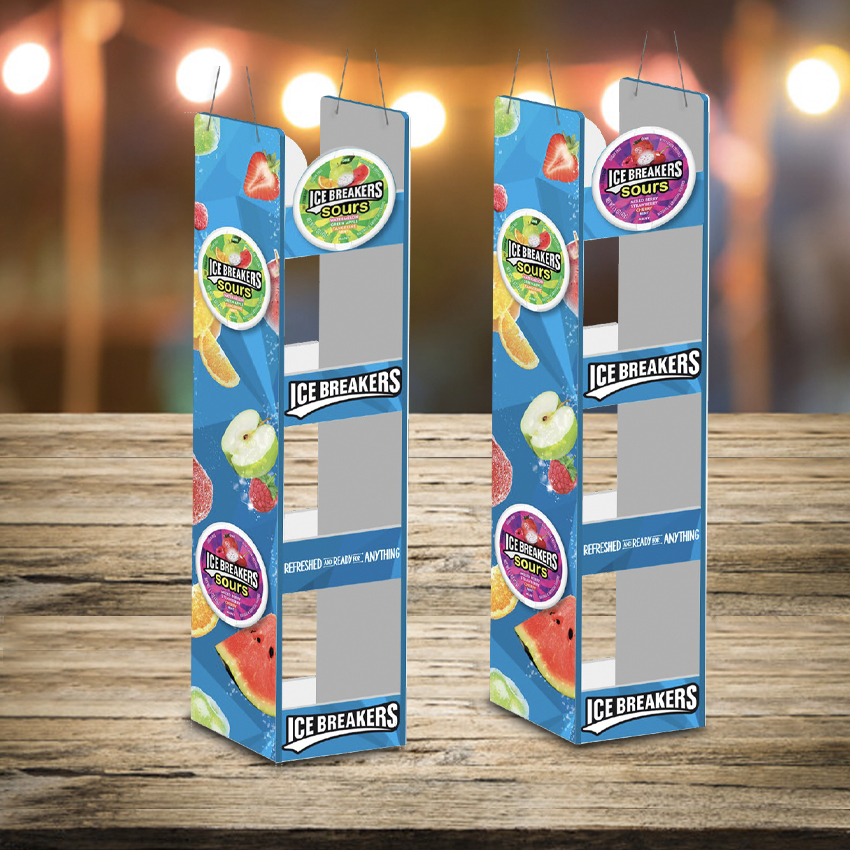 Visually appealing advertising display for your products. Enable your products to stand out from the other brands’ products that are placed on the usual shelves at retail outlets and supermarkets. Allows consumers to conveniently take your product from the hangsell display for purchase.