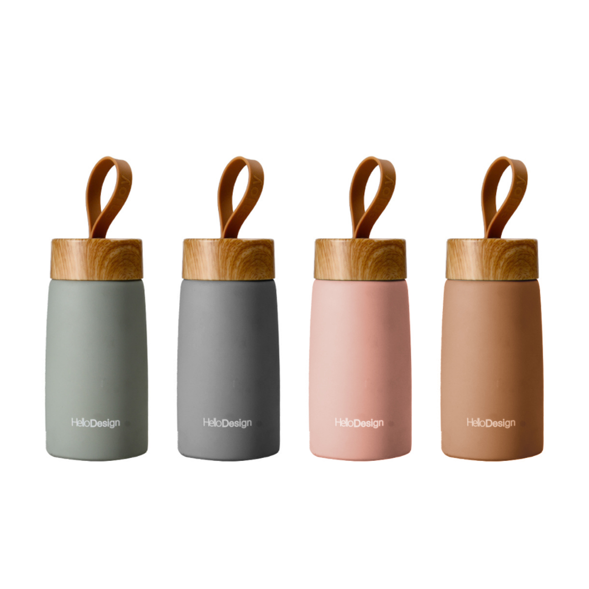 Minimalist, adorable and modern style insulated flask to bring your coffee or tea on the go. It comes with a top handle for easy carriage. Perfect gift for employee or marketing gift.