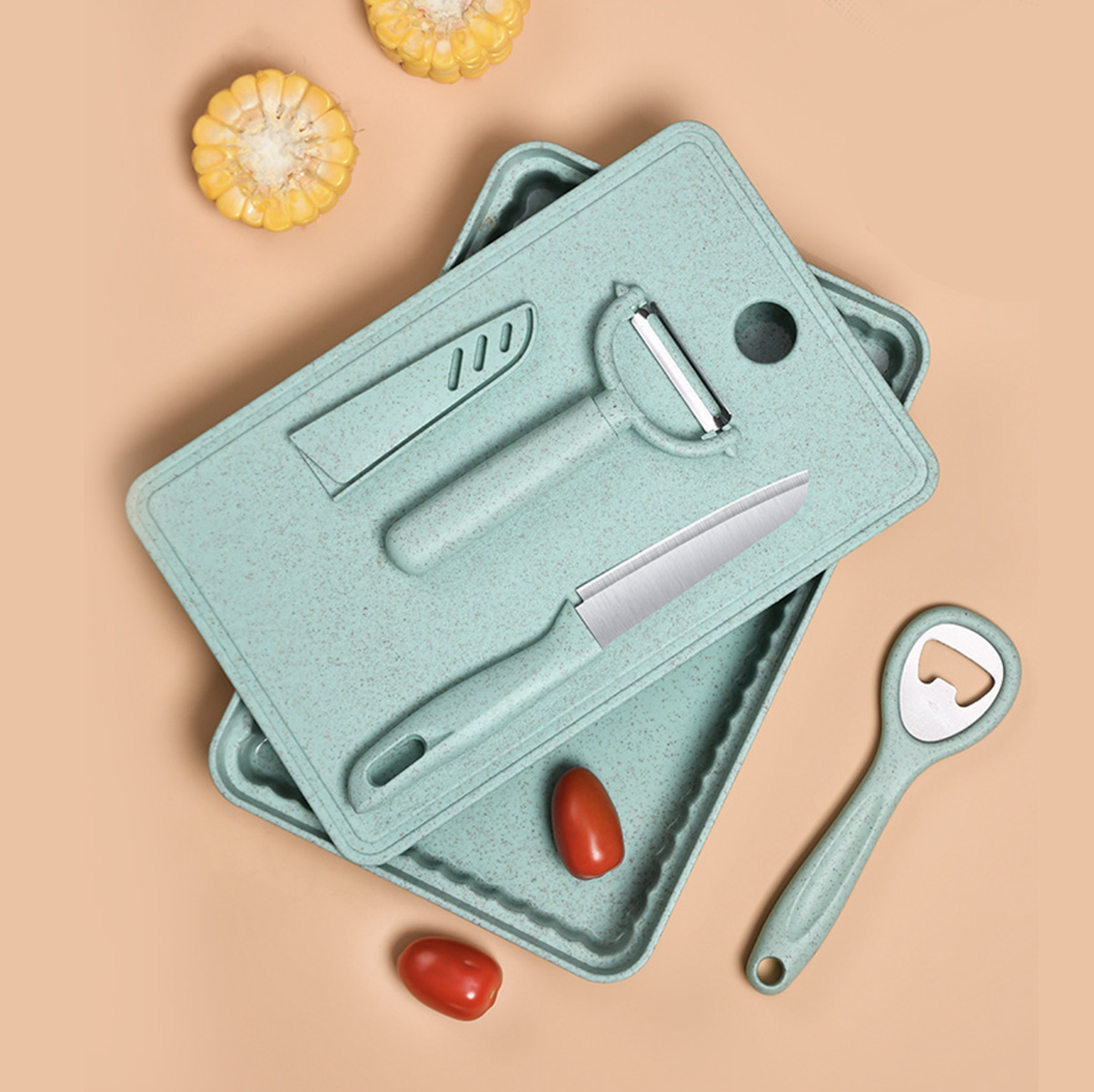 Wheat Straw 5pcs Chopping Board Set with Knife, Peeler and Bottle Opener