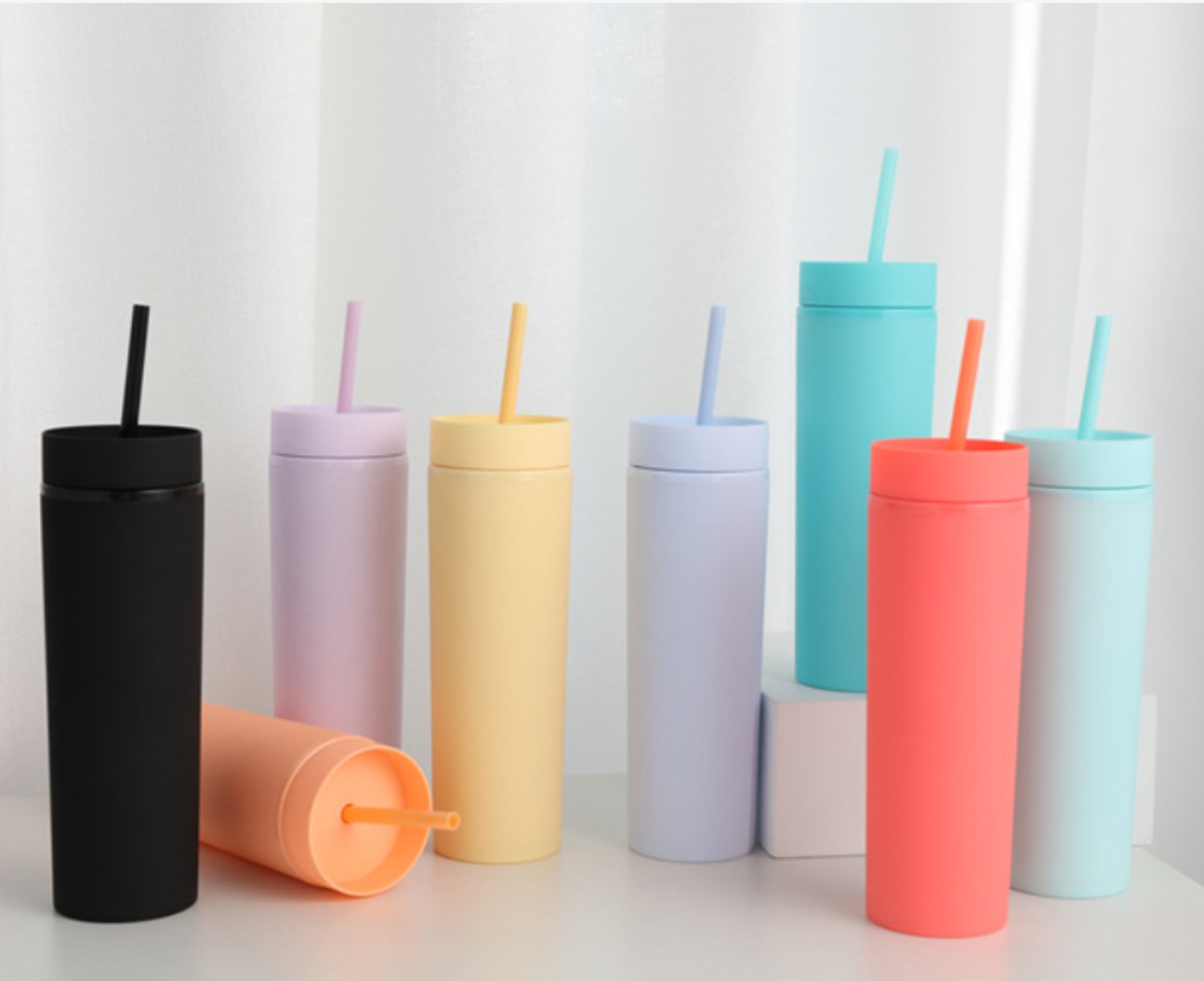 Trendy tumbler with straw that comes with multiple colors to choose from.
