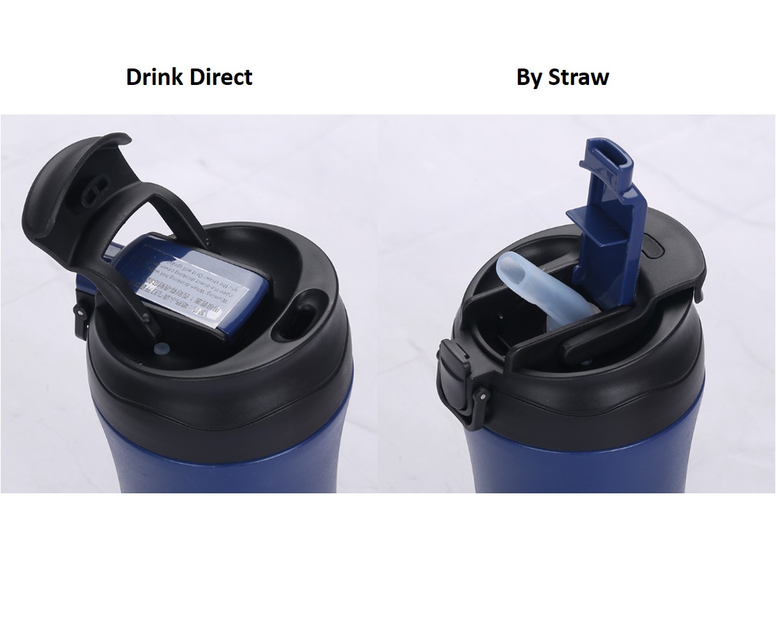 New dual drinking lid stainless thermal tumbler that can drink direct or by straw. Great for office use or to use in the car.