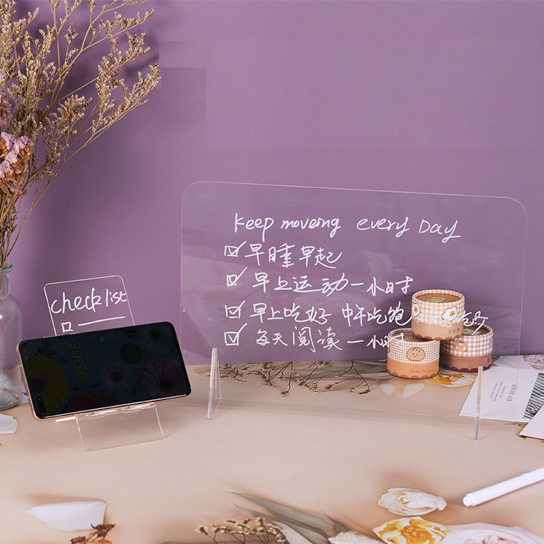 This desktop acrylic message board comes with a matching phone holder and white pen. It makes the ideal employee gift to use in home or office desk.