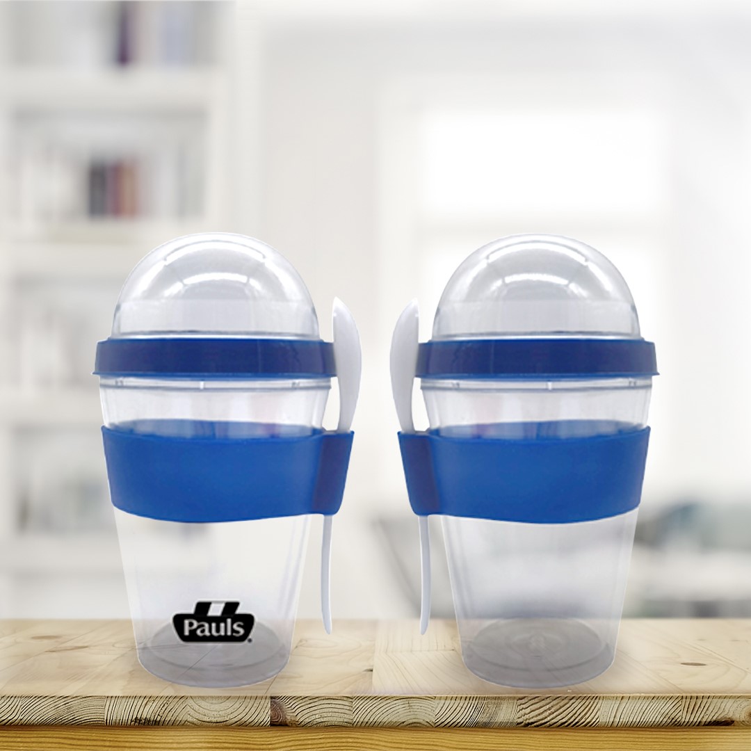 This breakfast cup is trendy and comes with a spoon which make it a great takeaway cup for your yougurt.