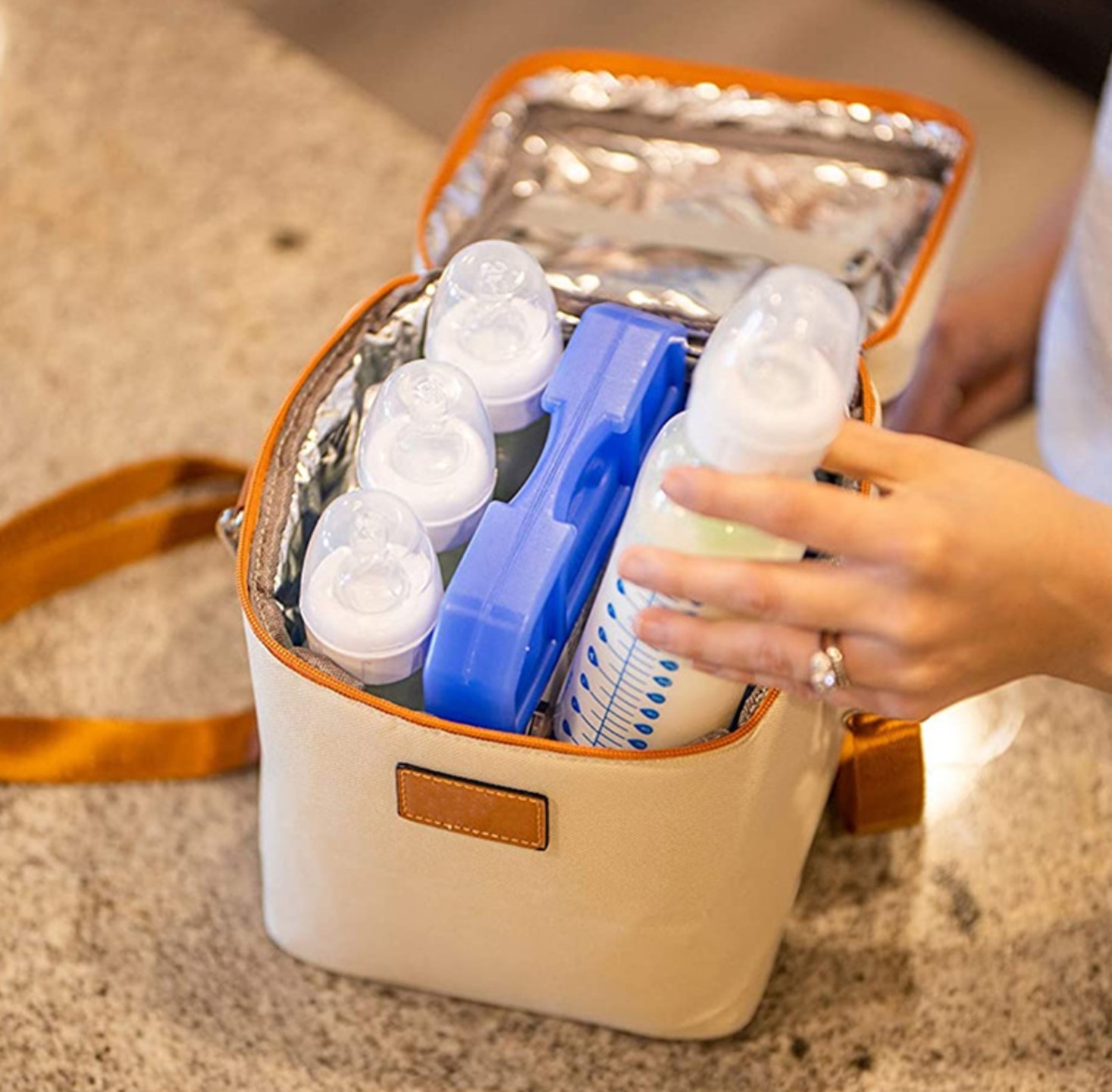 A big size mummy cooler bag that can keep your milk and hot water warm.