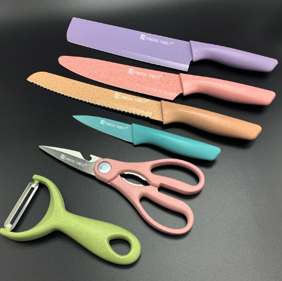 needs in the kitchen. Blades are made of stainless steel and handles are made of wheat straw material with ergonomic design to ensure a comfortable handling experience. This