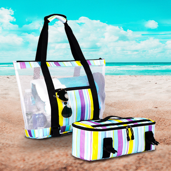 2-in-1 Mesh Beach Tote Bag with Detachable Cooler Bag