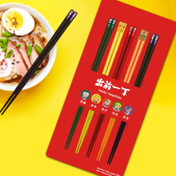 to the cute (and symbolic) family-themed cartoon design — the chopsticks will