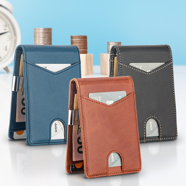 Waterborne PU Leather Money Clip Wallet and Card Holder
