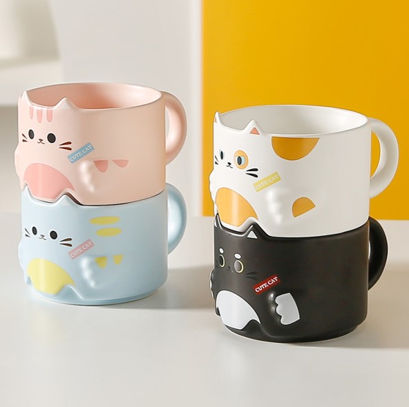Cartoon Cat Stackable Ceramic Mugs