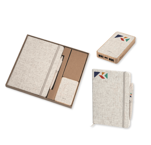 3 Piece Gift Sets – A5 Cotton and Linen Colorful Rope Pen + Power Bank